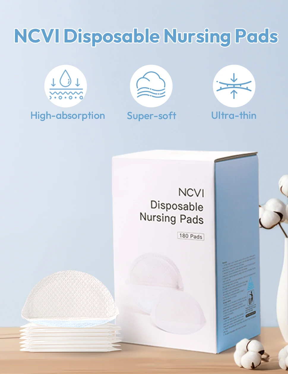 NCVI 2025 New Disposable Nursing Pads,Ultra Absorbent Breastfeeding Pads for Leaking Milk, Thin & Soft Nipple Pads