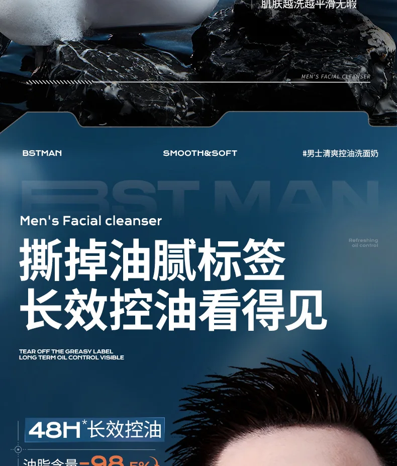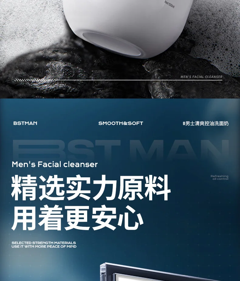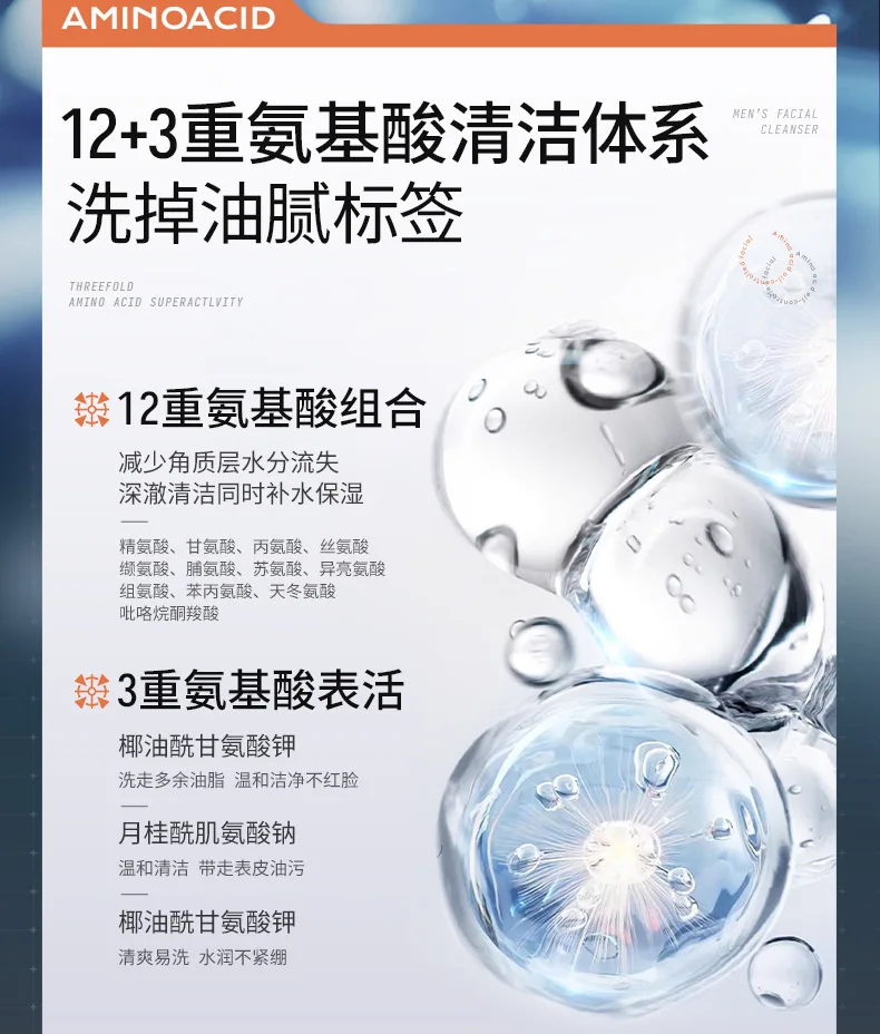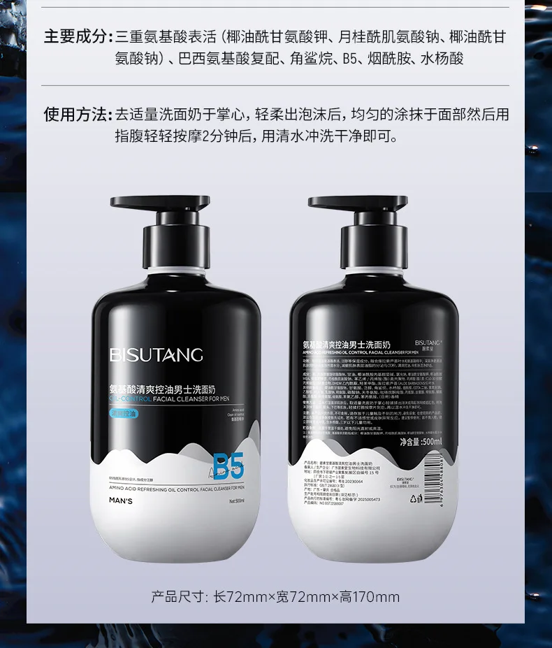 300ml Amino Acid Men's Face Wash – Oil Control & Deep Cleansing, Gentle Foaming Cleanser for , Refreshing & Non-Tightening